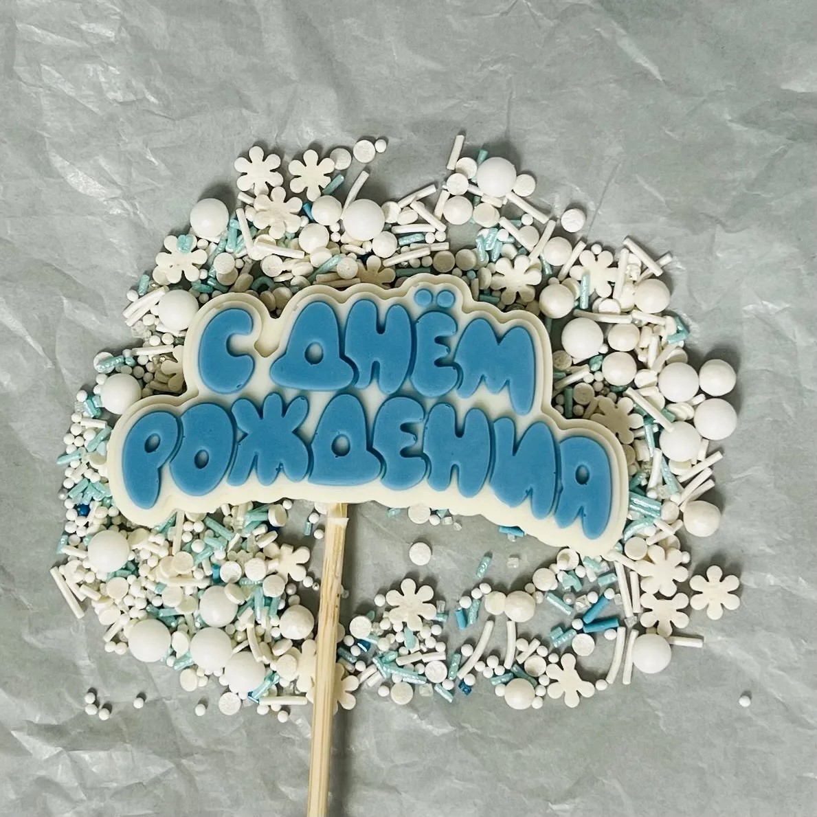 Фигурка из шоколадной глазури "С Днём Рождения" голубая L