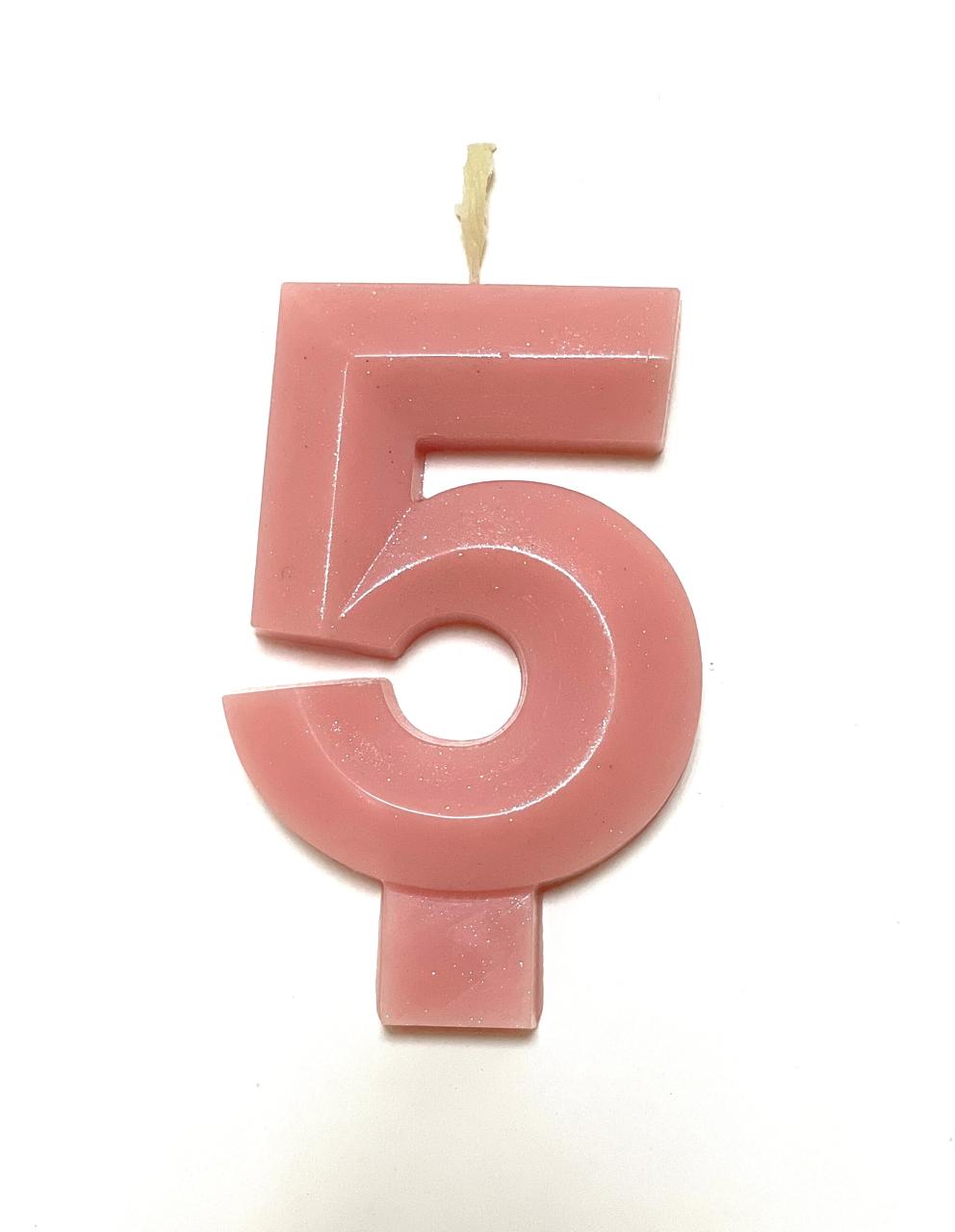 Свеча для торта восковая "Грани", "Цифра 5", розовый перламутр