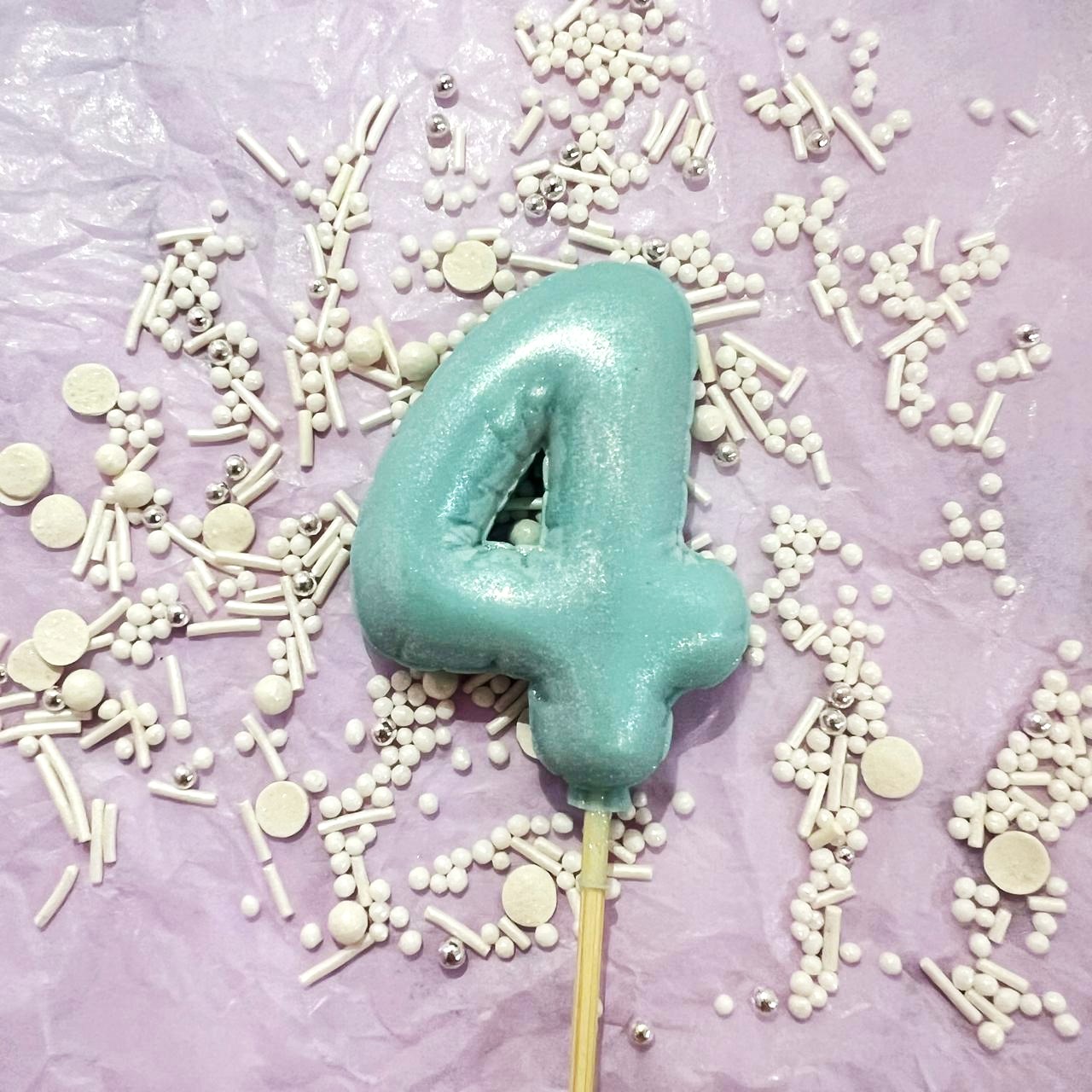Фигурка из шоколадной глазури "Цифра-Шарик 4" голубая