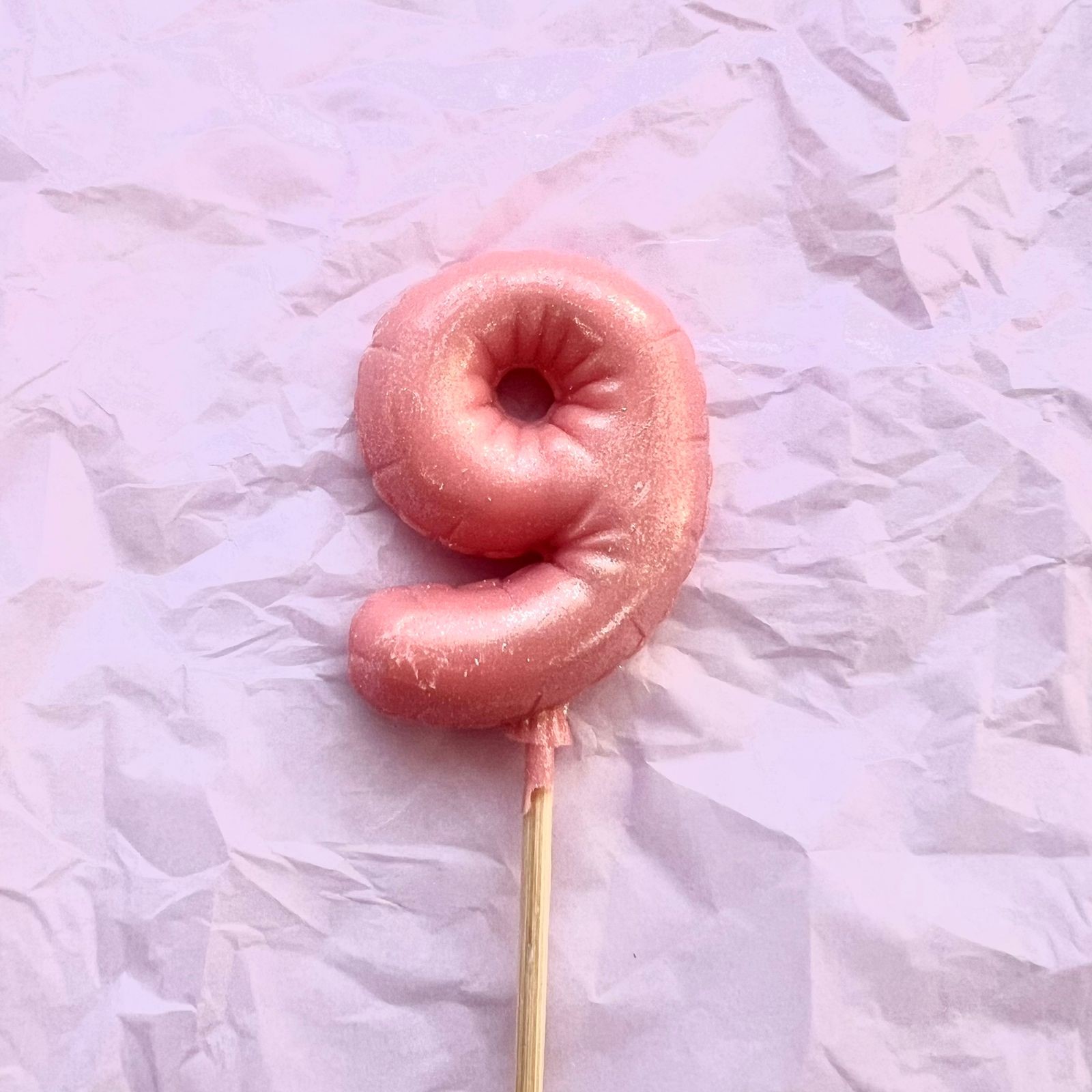 Фигурка из шоколадной глазури "Цифра-Шарик 9" розовая