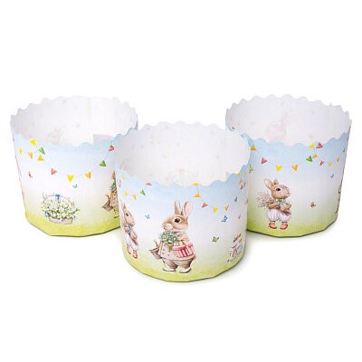 Форма бумажная для кулича d110, h85мм РЕТРО ЗАЙЦЫ 300г
