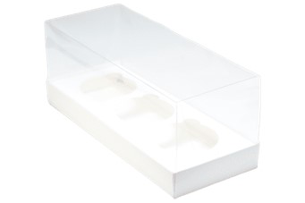 Коробка на 3 капкейка белая с пластиковой крышкой, 25х10х10 см