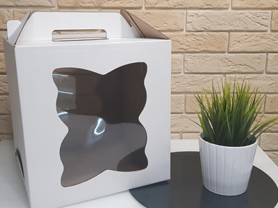 "Коробка с резным окном для торта 26 см*26 см*28 см с ручкой" 20 шт