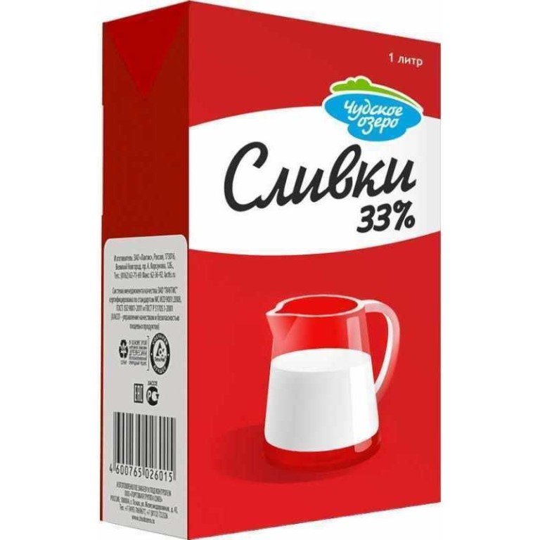 Сливки "Чудское озеро" 33% 1 л 12 шт