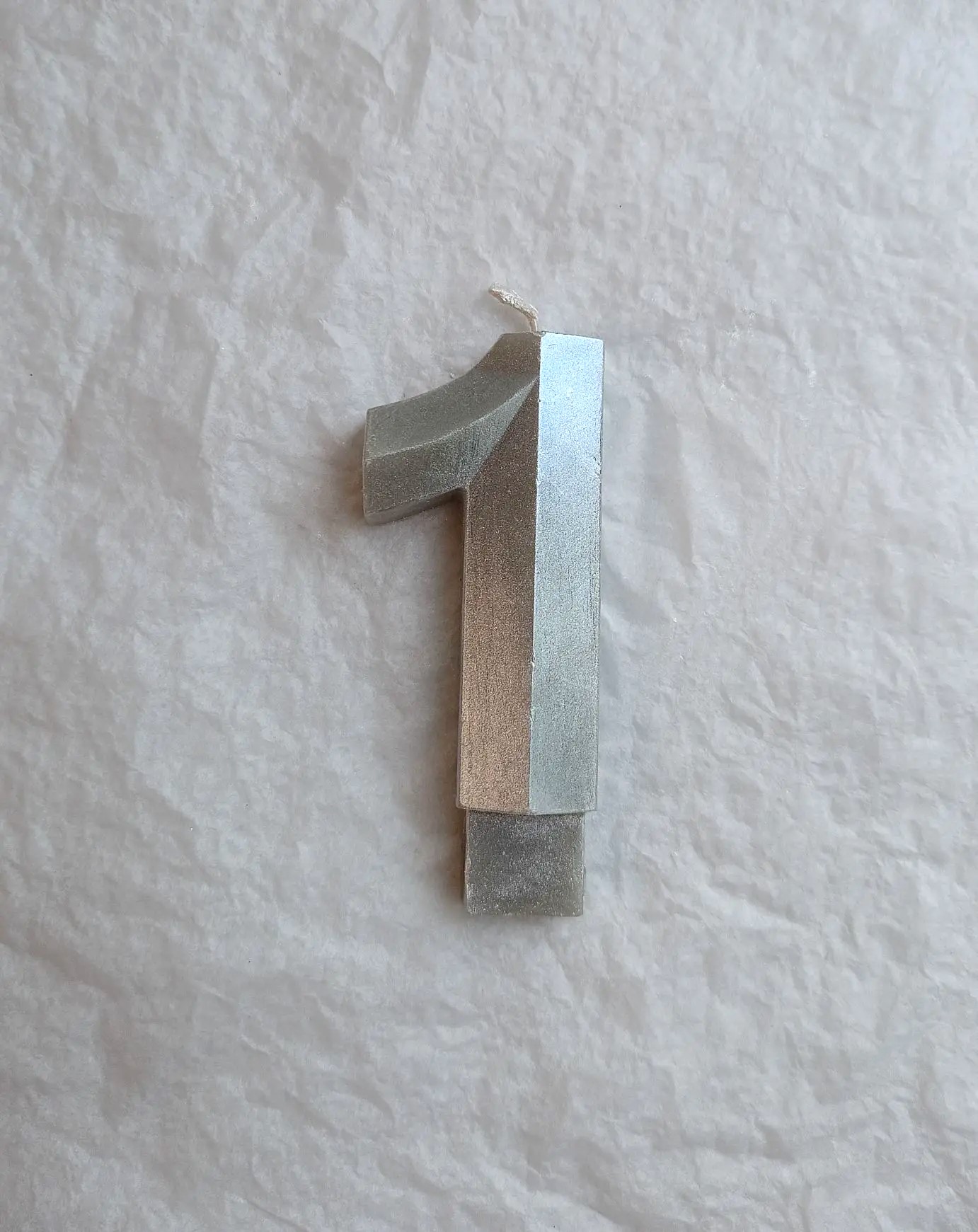 Свеча для торта восковая "Грани", "Цифра 1", серебро