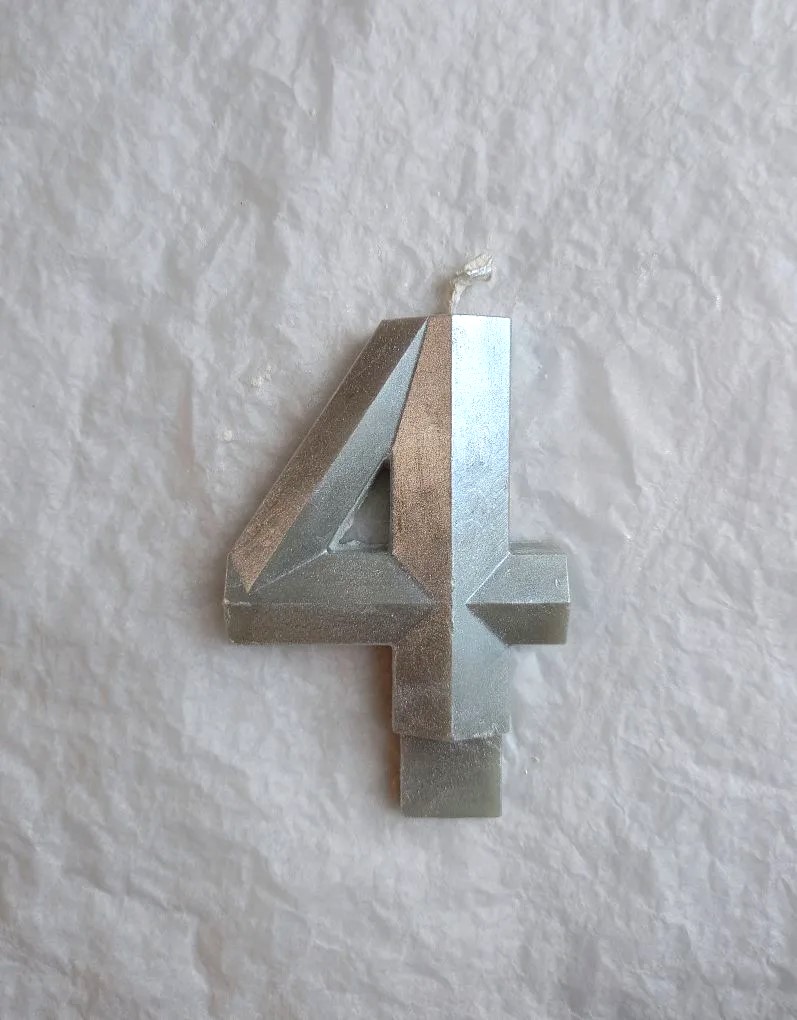 Свеча для торта восковая "Грани", "Цифра 4", серебро