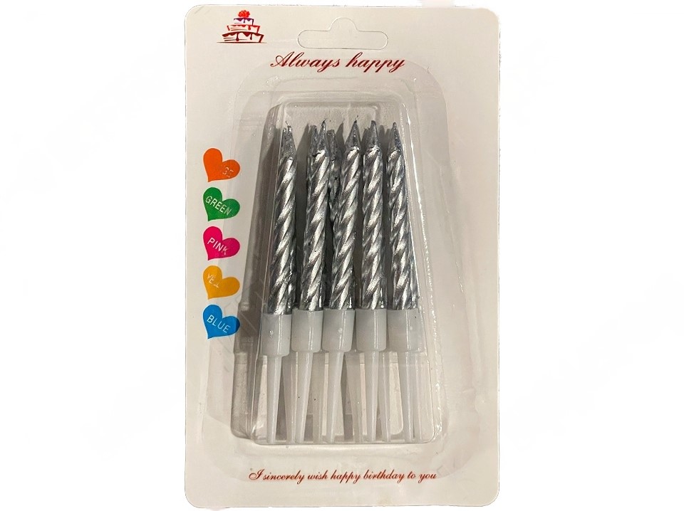 Свечи в торт "Спираль", 10 шт, средние, 7 см, серебряные